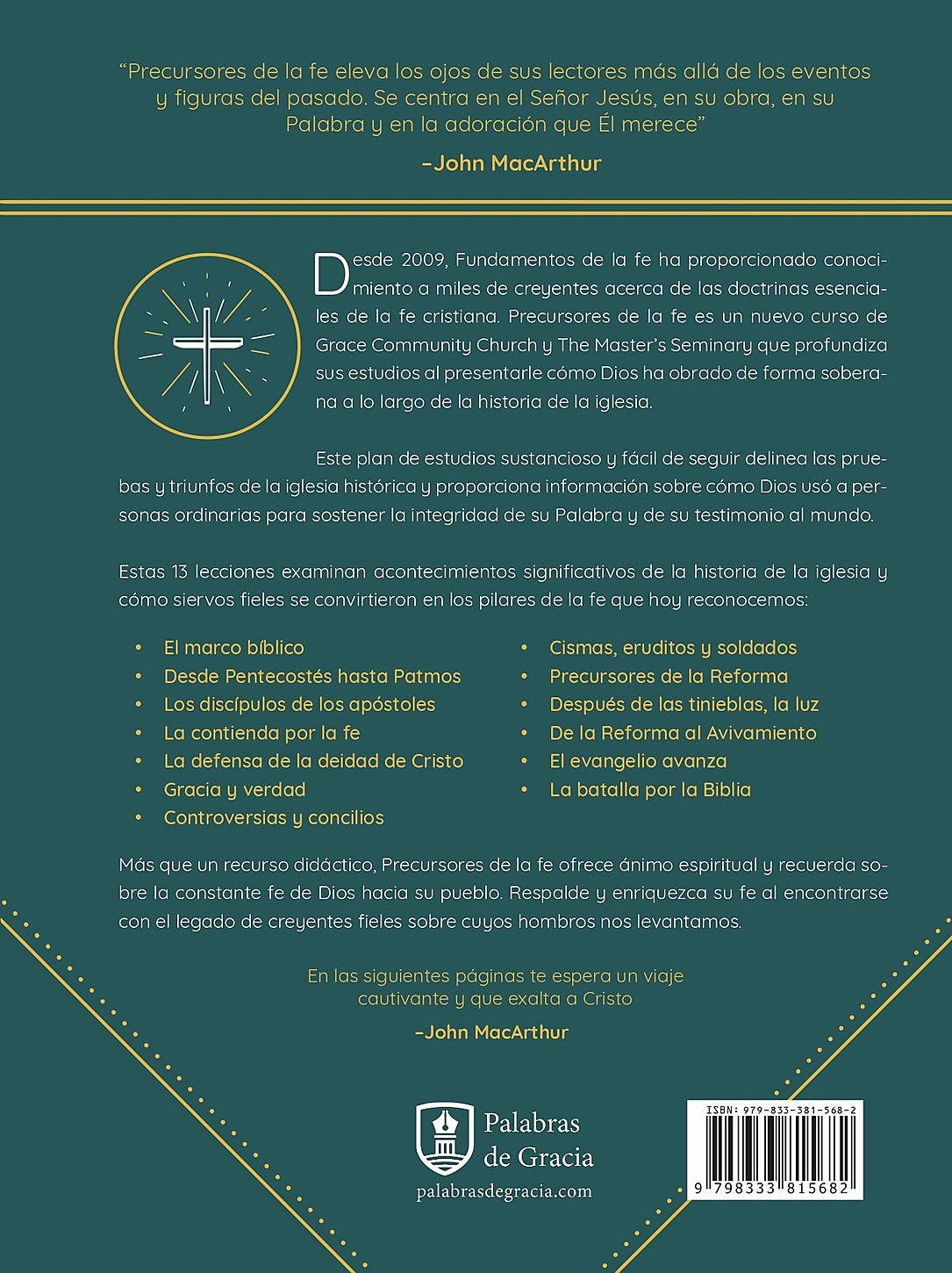 Esta conexión es precisamente lo que Nathan Busenitz trata de proporcionar. Basado en el bestseller Fundamentos de la fe, Precursores de la fe esboza la ortodoxia bíblica que caracteriza a la verdadera iglesia. A continuación, Busenitz identifica sucintamente trece lecciones clave que captan las pruebas y los triunfos de la Iglesia histórica, proporcionando una visión de cómo los antiguos cristianos respondieron a los problemas de su tiempo para convertirse en los pilares de la fe que ahora consideramos que son. Aprenda cómo su fe se apoya en los hombros de gigantes como Atanasio, Agustín y Wycliffe. Más que un recurso didáctico, Precursores de la fe sirve de estímulo espiritual al recordar el legado de fidelidad de Dios a Su pueblo.